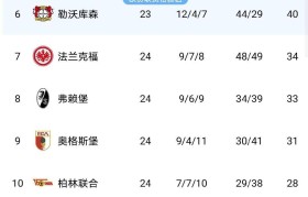 随着莱比锡2-1、法兰克福2-0、斯图加特4-0、最新德甲积分榜出炉