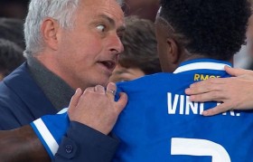 欧冠附加赛首回合,63岁穆帅染红被罚下,维尼修斯世界波助皇马先拔头筹