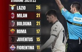 今天米兰新闻网在社媒上发了一个意甲联赛进五个赛季来的红牌榜,虽然此前感觉上米兰得到的红牌是有点多的,...