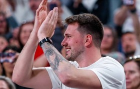 05月26日,湖人球员卢卡-东契奇来到西班牙甲级篮球联赛现场,观看老东家皇家马德里对阵格拉纳达的比赛...
