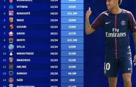 法甲标王转会费榜:巴黎2.22亿欧签内马尔居首,勒阿弗尔仅200万