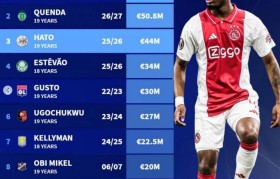 直播吧8月4日讯德转盘点了切尔西队史在引进U20球员上花费榜,其中新援哈托第三,拉维亚居首,具体如下...