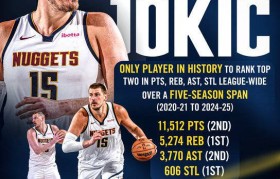 北京时间2025年8月4日,尼古拉-约基奇在过去五年间达成了一项前无古人的成就。在2020-21赛季...