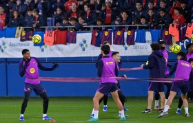 当日,巴塞罗那队在西班牙巴塞罗那附近的约翰·克鲁伊夫体育场进行公开训练。12月29日,巴塞罗那队球员...
