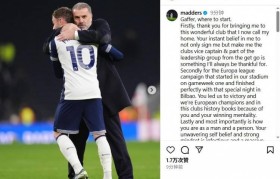 麦迪逊告别澳波:感谢您将我带到热刺,在您身上我获益良多