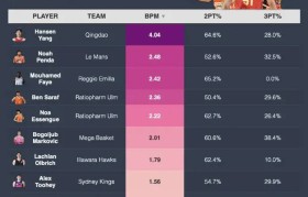 2025级选秀国际球员BPM排行:杨瀚森断档领跑