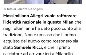意甲媒体透露:米兰新赛季将倚重加比亚和里奇,阿莱格里想打造意大利化的米兰